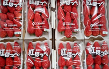 コメント:章姫×さちのかで2002年に誕生。鮮やかな赤色で見た目も美しく、甘味と酸味のバランスに優れています。中まで真っ赤でほっぺが落ちるほど美味しいことから名付けられました。