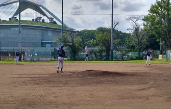 9/28(日)駒沢公園軟式野球場にて2回大会の2回戦が行われました。3塁側先攻で試合が始まりました。